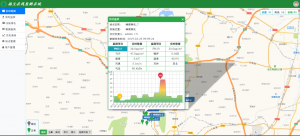 實時數據:用戶點擊監測點位圖標后系統自動顯示站點名稱、安裝位置、點位負責人、發布時間、各項監測因子實時數據等信息,數值通過折線圖與表示顏色搭配顯示,直觀展示站點當前污染情況,監測因子可以按照不同需求進行定制,顯示時間段分為實時狀態值、最近一小時值、最近24小時值等。