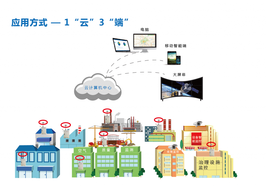 感知層也就是監測設備集成了PM10、PM2.5、TSP、噪聲、溫度、濕度、風向和風速等多個環境參數,提供24小時在線連續監測,能夠完成全天候提供工地的空氣質量數據、圖像、視頻記錄,超過報警值時還能自動啟動監控設備,進行視頻抓拍記錄,具有多參數、實時性、智能化等特性。監測儀器獲取的數據通過我們的“1云3端”的應用方式,實時傳輸到系統的中心控制平臺上,再由監測管理平臺對采集的數據進行分析、整理、報告,實現執法系統化和透明化。監測設備與平臺間的無縫對接,使得我們的監測設備和平臺組成的揚塵在線監測系統實現了全方位、立體化、高精度的作業特點。同時設備還提供車載式、移動式、便攜式多種不同樣式滿足多種使用場景。