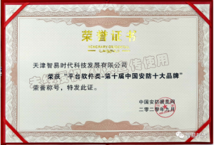第十屆中國安防十大品牌榮譽證書