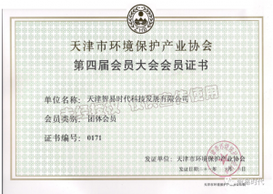 天津市環保產業協會會員證書